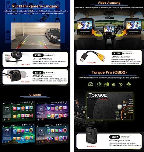 Erisin 8-Core 4GB + 64GB Android 12 Autoradio Bluetooth Vivavoce per Opel Meriva Corsa C/D Zafira Vivaro Antara, Supporto GPS Navigatore Wireless Carplay Android Auto WiFi RDS DAB+ OBD2 USB FM DSP CD
