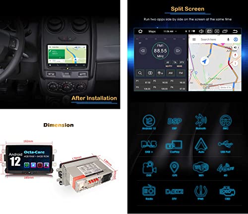 ✪【Android 12, 8-Core, 4GB RAM+64GB ROM】GPS DVD Autoradio da 8 pollici per Renault Dacia Duster Logan Dokker Lodgy con potente sistema Android 12, è possibile godere di un'esperienza utente fluida e reattiva. Avvio rapido, IPS touch screen capacitivo. Architettura CPU 2* A75 + 6*A55 64-bit 1800MHz. 2 schede/3 USB fino a 5*256GB di storage esteso.L'amplificatore STMicroelectronics TDA7851 incorporato supporta il subwoofer e il suono stereo da 4*48W. Integrati DVD, USB, TF, radio, RDS, orologio.