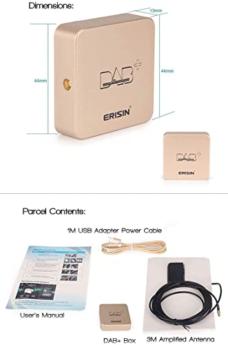 Erisin DAB Digitale Radio Antenna DAB+ Box con Antenna Amplificata DAB plus Ricevitore MCX Sintonizzatore FM Adattatore Connessione USB per Android Autoradio