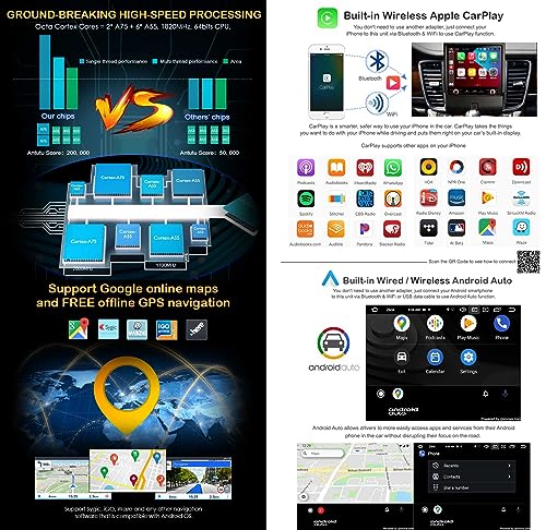 ✪【Wireless Apple CarPlay e Android Auto & DSP】Consente agli utenti di effettuare telefonate e ascoltare musica. Basta collegare il tuo iPhone a questa unità tramite Bluetooth per utilizzare CarPlay o collegare il tuo telefono Android tramite Bluetooth/USB per utilizzare Android Auto. Questa autoradio ha anche un amplificatore DSP integrato. L'equalizzatore a 16 bande si adatta al tuo gusto e all'ambiente di ascolto, portando l'effetto sonoro perfetto nella tua auto.