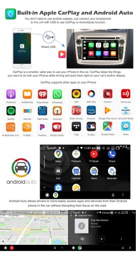 【Wireless CarPlay e Android Auto e DSP cablato】 Collega semplicemente il tuo iPhone tramite Bluetooth, smartphone Android tramite USB a questa radio, quindi puoi effettuare telefonate, controllare i messaggi vocali, inviare e ricevere messaggi di testo, ascoltare musica facilmente. e usa la navigazione online per concentrarti sulla strada. Più intelligente e più sicuro! Amplificatore DSP integrato, che offre l'effetto sonoro perfetto per la tua auto.