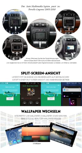【4-core, 2 GB + 16 GB】 Autoradio doppio din da 7 pollici per Porsche Cayenne, CPU: Quad core MT8227L 1118 MHz Cortex A7, sistema operativo: Android 10, RAM: 4 GB, ROM: 64 GB, supporto 2 schede TF / 3 USB fino a 5 * 64 GB di memoria estesa. Touchscreen capacitivo HD 1024 * 600, decoder CanBus incluso. Uscita audio: 4 * 45 W. La dimensione del pannello frontale è 236 mm (larghezza superiore) * 125 mm (altezza) * 230 mm (larghezza inferiore).