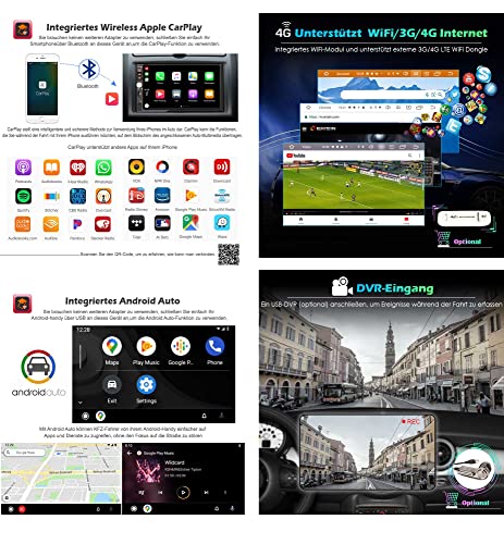 ✪【Sistema Android 10 Veloce e Reattivo】Radio GPS per autoradio Double Din con il potente sistema Android 10 più recente, puoi goderti un'esperienza utente fluida e reattiva. Avvio rapido, touch screen capacitivo. Sistema operativo Android 10.0, Quad Core, 2 GB di RAM e 16 GB di ROM, 1 Karte/3USB bis zu 4*64GB Externer Speicher. Supporta DAB+, DVB-T/T2, TPMS, OBD2, DVR, Fotocamera, AVIN, 3G, 4G ecc. funzioni estese.
