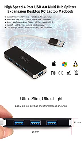Hub USB 3.0 con 4 porte: ti tiene lontano dal problema di collegare e scollegare ripetutamente e ti aiuta semplicemente a collegare il tuo PC/laptop con un massimo di 4 dispositivi USB esterni, come hard disk esterni mobili, unità flash USB, telefono cellulare, mouse, tastiera, cuffie USB, altoparlanti, lettore di schede, lettore MP3/MP4/MP5, fotocamera, stampante, scanner e molto altro ancora. Dispositivi USB.