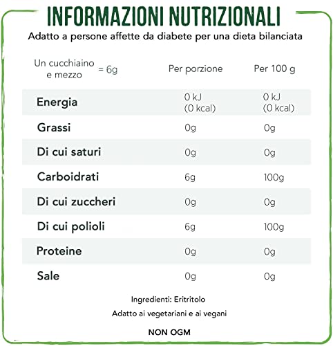100% Eritritolo: adatto a persone diabetiche e di origine naturale.