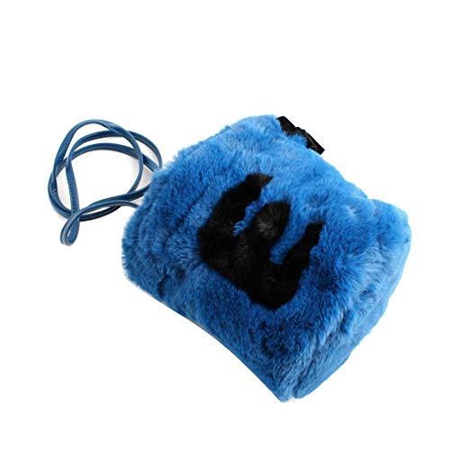 Ermanno Scervino Borsa pochette sacchetto donna eco pelliccia turchese con lettera E nera. Tracolla in pelle. Sacca protettiva logata.