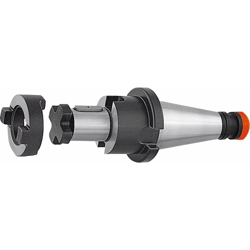 Filetto interno per codolo. Uso: Con chiavetta − per frese con scanalatura longitudinale, per es. DIN 841. Con anello di trascinamento − per frese con scanalatura trasversale, DIN 1880. Fornitura: Inclusa chiavetta, anello di trascinamento e vite di serraggio. Accessori speciali: chiave speciale n. art. 309840. Dati tecnici Norma DIN 6358 Norma attacco DIN 2080 Precisione della concentricità radiale µm ≤ 6 Adattatore SK 50 A = 55 Tipo di prodotto Attacchi frese Filettatura M M24 Lunghezza complessiva L, mm 206 Mandrino di ⌀ d1, mm 32 Lunghezza mandrino portafresa L4, mm 38 Vite di serraggio per fresa di ricambio n. art. 309860 / 309861 32 Anello di trascinamento di ricambio n. art. 309870 32 Chiave speciale adatta n. art. 309840 32 Lunghezza mandrino portafresa L3 con anello di trascinamento, mm 24