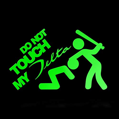 ERREINGE Sticker compatibile per LANCIA DON'T TOUCH MY DELTA DUB JDM TUNING VERDE FLUO Adesivo prespaziato in PVC per Auto Lunotto Finestrino - cm 35
