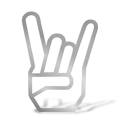 ERREINGE STICKER PRESPAZIATO ARGENTO 20cm - Shocker Rock Hand Mano Dita Rocker Corna - Adesivo Decal Decalcomania Vinile Murale Laptop Auto Moto Casco Camper