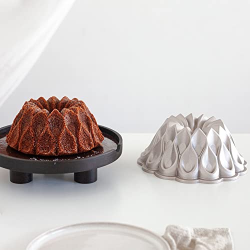 COTTURA UNIFORME: lo stampo a ciambella, con una cavità al centro, permette al calore di raggiungere il centro della torta, ottenendo così una cottura più rapida e uniforme. Inoltre, l'alluminio fuso raggiunge un trasferimento del calore uniforme all'esterno della torta per risultati professionali.