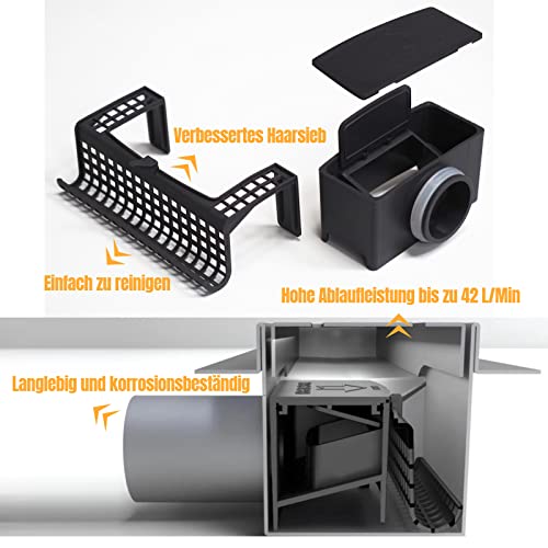 Ersazt - Sifone con arresto dell'odore, set per canalina doccia, scarico del pavimento, scarico dell'acqua