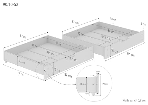 Erst-Holz Due cassetti bianche sotto Letto per i Nostri letti a Castello 90x200 in Pino 90.10-S2W