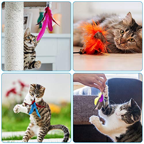 Design interessante: il set di giocattoli per gatti include 11 giocattoli di piume, tra cui bacchetta da rompicapo per gatti, piume colorate, vermi e altri stili. Ci sono campane sulla maggior parte delle piume. Quando si gioca con un gatto, le piume turbineranno e suonerà la campana, il che aumenterà l'interesse del gatto.