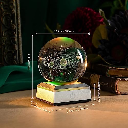 Materiali di qualità: realizzati con cristallo K9, rendendo la palla più trasparente e lucida, senza bolle, distorsioni, colore o inclusioni, puro e di lusso. I nomi dei pianeti incisi nella sfera di vetro sono chiari, le belle stelle sono intorno ai pianeti