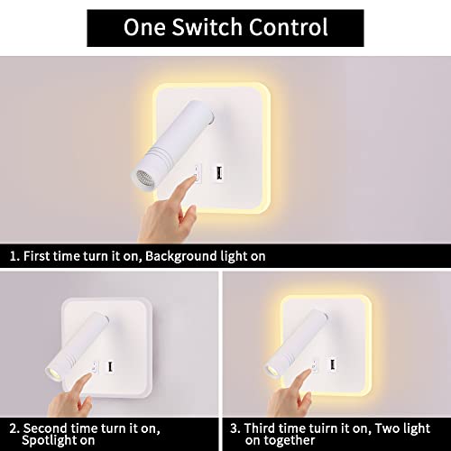 1x interruttore a pulsante e 1x porta di ricarica USB. L'interruttore consente di controllare la lampada da parete o la lampada da lettura separatamente. La retroilluminazione bianca calda e la lampada da lettura bianca neutrale ti offrono di sentirti sempre rilassato e confortevole.