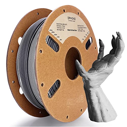 ERYONE Matte Dual-Color PLA Filament 1.75 mm for 3D Printers,Accuracy +/- 0.03 mm,1kg/Spool,Matte Bianco e Nero