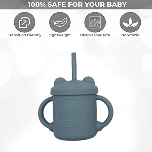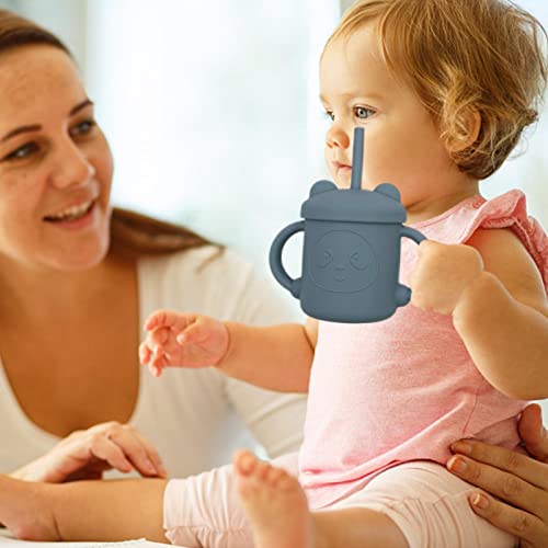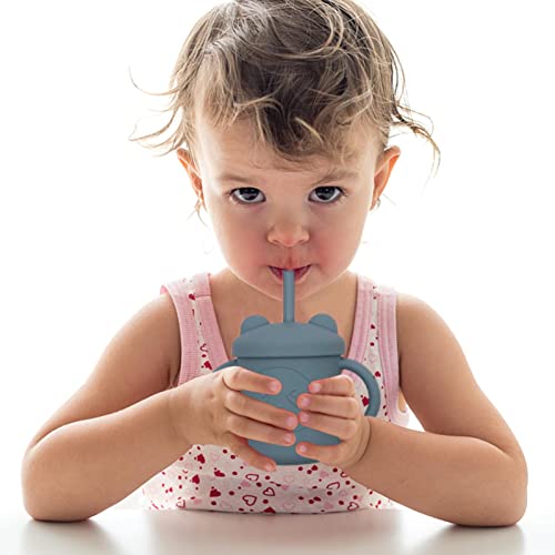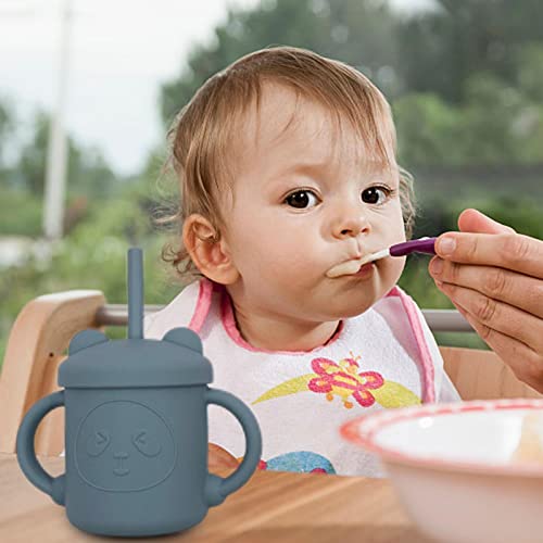 ERZU Tazza per Bere in Silicone per Bambini, 8 Colori Tazza per Bere per Bambini con Coperchio, Manici e Cannuccia, Tazza in Silicone Morbida con Cannuccia Regalo Perfetto per Il Bambino