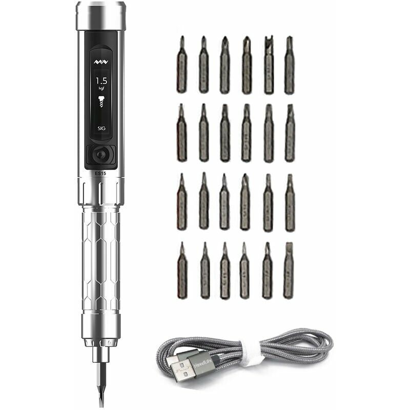 Questo cacciavite ES15 è un nuovo tipo di cacciavite elettrico intelligente con le modalità di controllo del movimento intelligenti, che possono fornire agli utenti un'esperienza di utilizzo migliore. Questo strumento può essere ampiamente utilizzato per la tua manutenzione quotidiana, se ne hai bisogno, vieni a provarlo, non ti deluderà. Caratteristiche: Tre MODALITÀ DISPONIBILI: questo ES15 con tre modalità tra cui scegliere: controllo del movimento intelligente, direzionale in avanti e direzionale inverso. La modalità di controllo del movimento intelligente adatta per riparazioni rapide e due modalità direzionali adatte per lo smontaggio e l'installazione.La funzione di impatto può garantire che tutte le viti siano fissate in posizione con una coppia precisa./> La sensibilità e la velocità di riconoscimento del movimento possono essere regolate in base a diversi scopi di manutenzione Funzione anti-incollaggio (ritiro): Appositamente progettato per viti esagonali per evitare che la