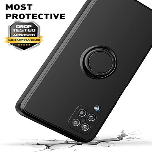 Esakycn Cover per Samsung Galaxy A12 / M12, Custodia Silicone con 2 Temperata Protettiva & 2 Pellicola Fotocamera, Magnetica Anello Ring Supporto Silicone Case per Samsung A12 / M12 6,5", nero