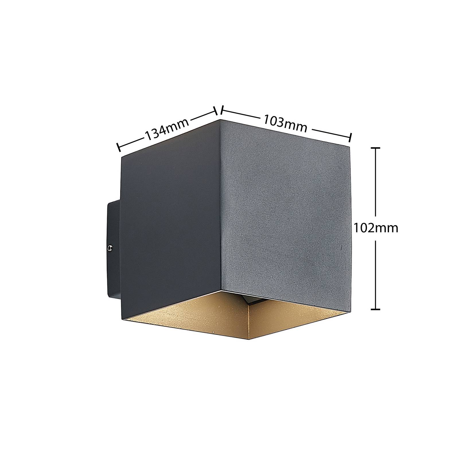 Apparecchio da parete a LED per esterni di forma geometrica Esani in look scuro - emissione di luce regolabile Dotato di protezione IP54, questo bellissimo apparecchio è protetto in modo ottimale dal vento e dalle intemperie ed è quindi adatto per l'ingresso o la zona del patio. I LED installati in modo permanente emettono una luce bianca calda che è morbida e invitante e crea bellissimi accenti di luce sulla parete. Inoltre, l'angolo di emissione della luce può essere regolato individualmente in alto e in basso. L'apparecchio da parete a LED per esterni Esani ha un design cubico ed è realizzato in alluminio pressofuso. La sua finitura superficiale in antracite ha un aspetto trendy e sorprendente ed è particolarmente efficace in un ambiente moderno.