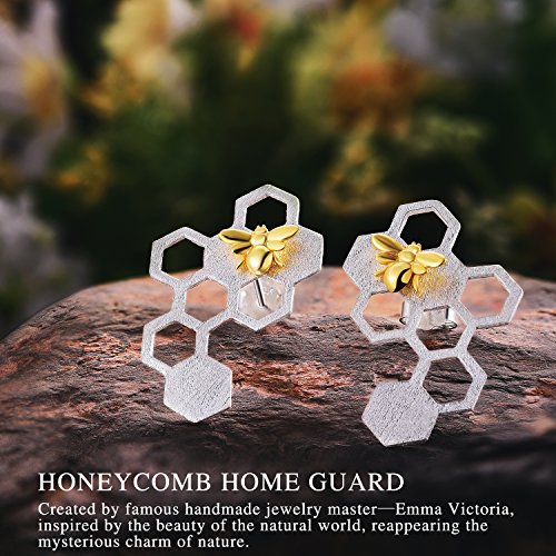 Esberry S925 - Orecchini pendenti in argento Sterling a nido d'ape con guardia domestica, alla moda, unici gioielli fatti a mano, per donne e ragazze