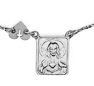 Escapulario in Argento 925 con immagini colorate (Rodio)