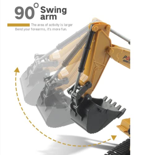 【FUNZIONE DEL PRODOTTO】: Questo escavatore giocattolo ha un telecomando a 5 canali con funzioni avanti, indietro, sinistra, destra e scavo, facile da usare per i bambini.