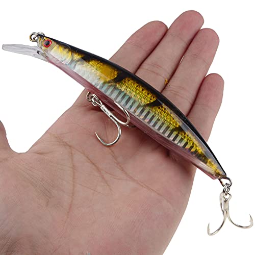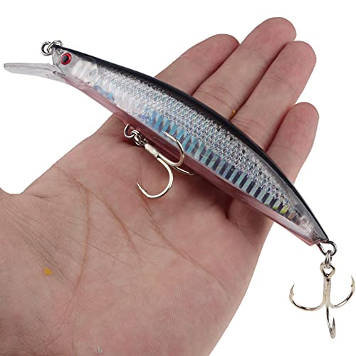Occhi 3D ad alta risoluzione, dettagli realistici del corpo e rivestimenti superficiali altamente riflettenti creano un'esca da pesca realistica. L'intera esca ha linee morbide, molto adatte per la traina o il lancio, creando un nuoto realistico, fluido e veloce nell'acqua.