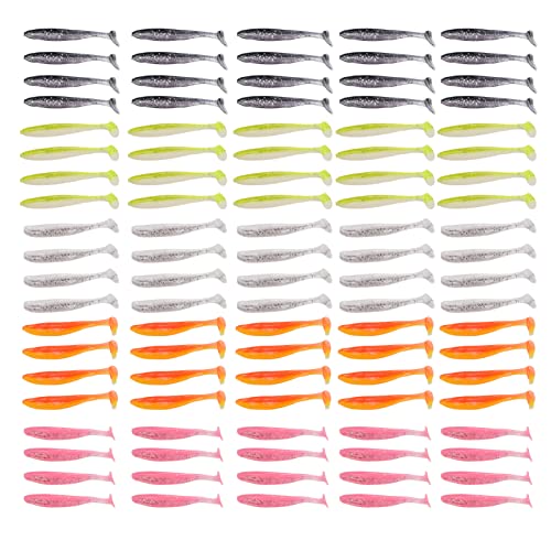 Esche da Pesca,100 Pezzi di Esche Artificiali Spinning,morbide realistiche a Coda di pagaia Esche da Bagno in Gomma Fluorescenti a riflessione per la Pesca del Pescatore per Trota, Spigola