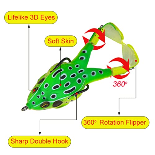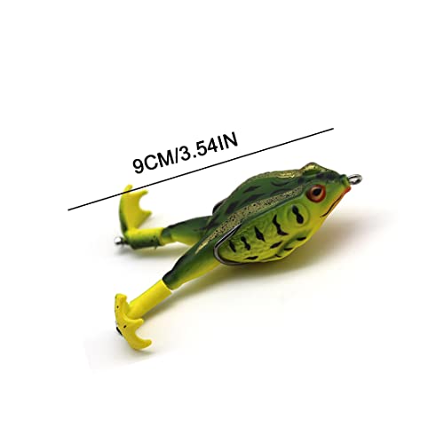 Esche a rana, 2 pezzi di rana da pesca, esche da pesca, eliche a doppia rana da 9 cm, esca artificiale morbida rotante a 360 ° con gancio per la pesca all'aperto