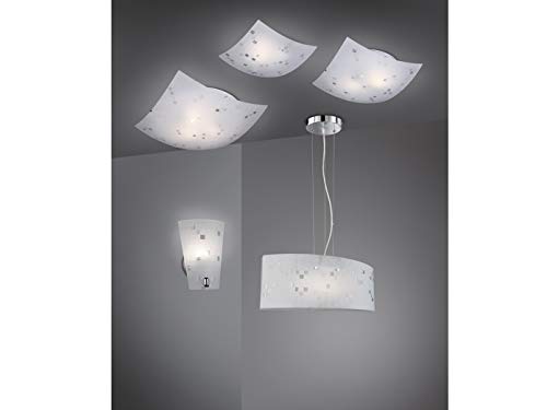 Esclusiva copertura quadrata 40 x 40 cm con paralume satinato in vetro bianco con motivo sobrio nei toni del grigio