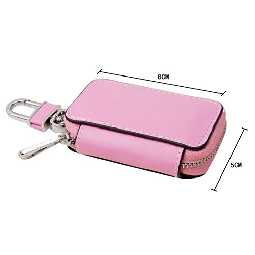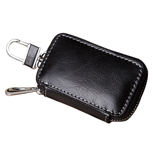 Esdrem Portachiavi unisex in vera pelle, custodia per le chiavi dell'automobile, con cerniera e finestra trasparente Black 2