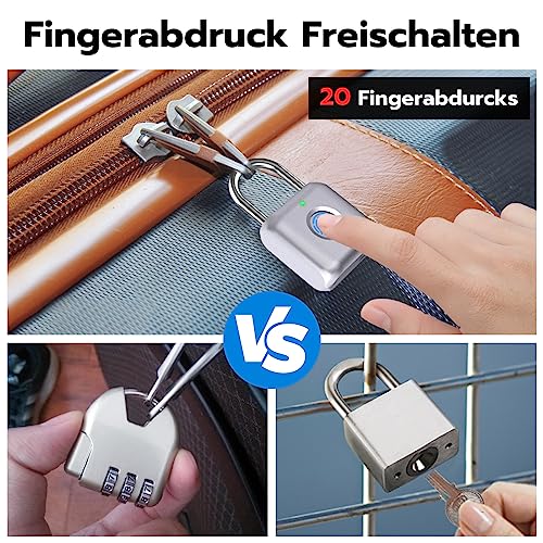 【Resistenza e durata】Il design di questo mini lucchetto a impronte digitali è realizzato in lega di zinco e acciaio inossidabile con eccellente resistenza al taglio.