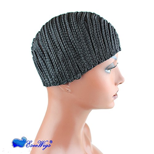 Eseewigs Cappellino di trecce nere per la trama dei capelli più facili da cucire Progettato per coloro che hanno sofferto di perdita di capelli Cap parrucca intrecciata L