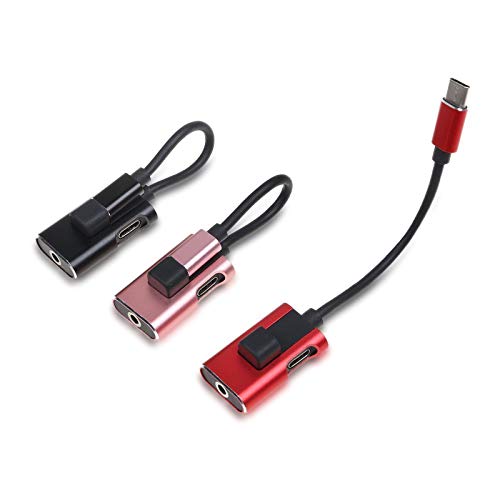 Esenlong Adattatore USB C a 3.5 Mm Jack cuffie AUX, adattatore audio di tipo C, ricarica rapida, convertitore USBC, per cuffie in lega di alluminio, TPE, nero, rosso, oro rosa