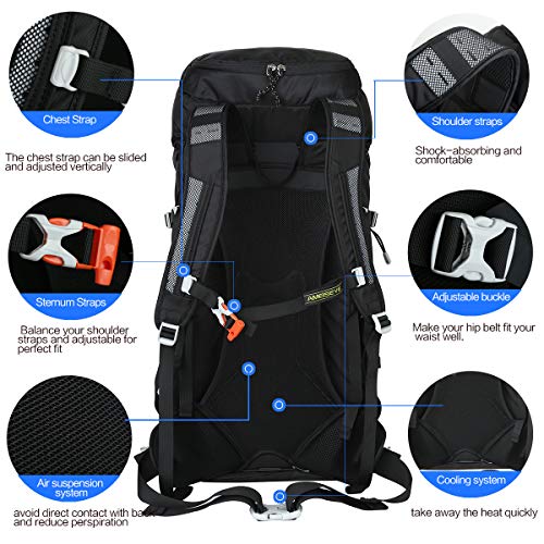 Eshow Zaino 40 Litri da Trekking Montagna Zaino 40L Escursionismo Campeggio Viaggio Hiking Uomo Donna Unisex Impermeabile Leggero con Copertina Antipioggia Outdoor Sport in Nylon (nero07)