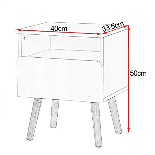 ESituro Comodino con Cassetto Camera da Letto Piccolo Moderno Cassettiera Cameretta Scompartimento Aperto Gambe in Legno Bianco 40x33,5x50cm SCD0053