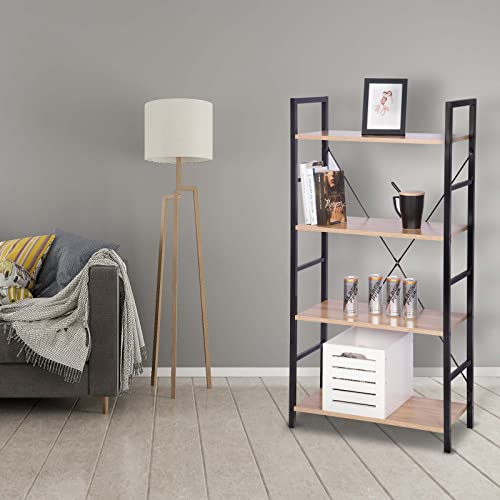 ESituro Scaffale Libreria in Metallo Scaffale Modulare a 4 Ripiani Scaffalatura Portaoggetti per Cucina Soggiorno Nero-Rovere SSTR0049