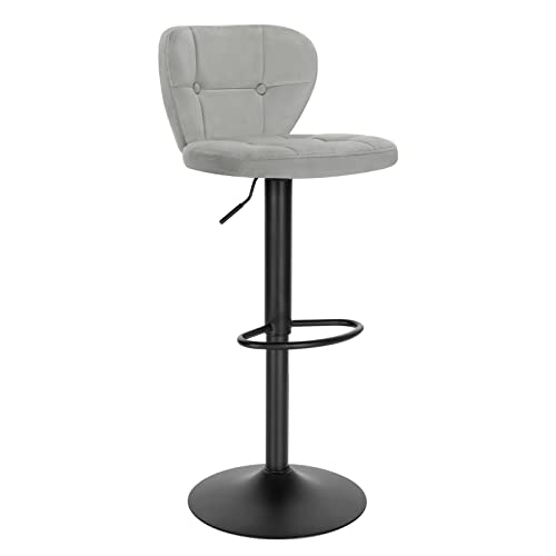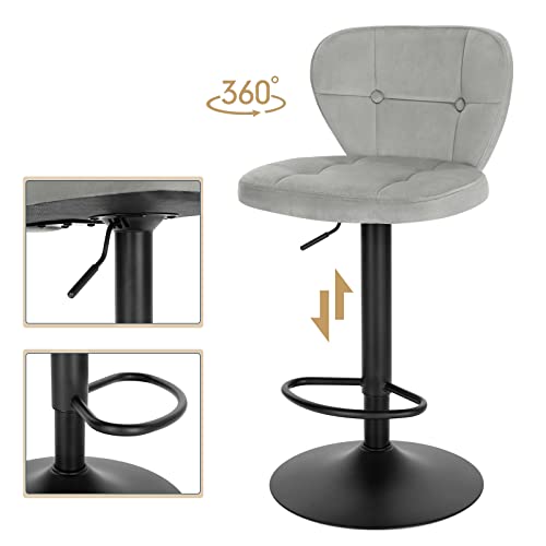 ESituro 2x Sgabelli da Bar con Schienale Sedie Alte da Cucina con Poggiapiedi in Velluto e Metallo,Sgabello Regolabile in Altezza 62-83cm Girevole a 360°,Grigio chiaro SBST0621-2