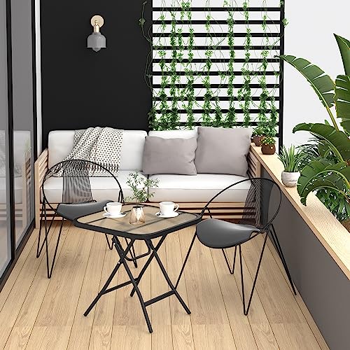 ESituro Tavolino Pieghevole Tavolino da Balcone Tavolo da Esterno con Piano in Vetro, Tavolino da Giardino, Tavolino da Appoggio Tavolo Richiudibile, Nero+transparente, 46x46x48cm SCPT0042