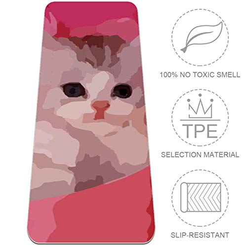 Eslifey - Tappetino da yoga per bambini con sfondo rosa e gatto, spesso antiscivolo, per yoga, per donne e ragazze, 182,9 x 61 cm, spessore 1/4"