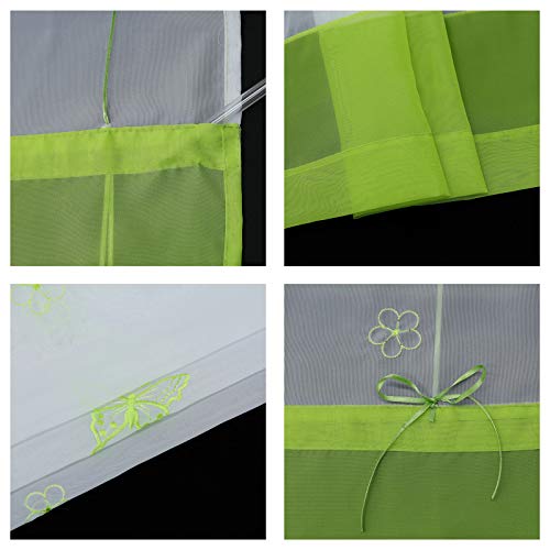 Eslir, Tenda a pacchetto da cucina con cordoncino, trasparente con farfalla ricamata, in voile, 1 pezzo, 100% poliestere, verde, BxH 100x140cm