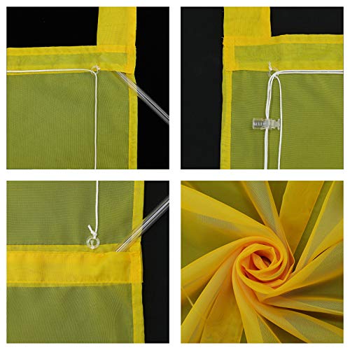 ESLIR Tenda a pacchetto con passanti, in voile, trasparente, moderna, tinta unita, 1 pezzo, giallo x 120 x 140 cm, 1 pezzo