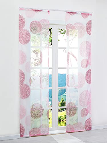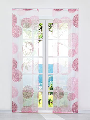 ESLIR - Set di 2 tende a pannello, con guida in velcro, trasparente, con motivo con rami, rosso, in voile, 2 pezzi, larghezza x altezza 57 x 225 cm