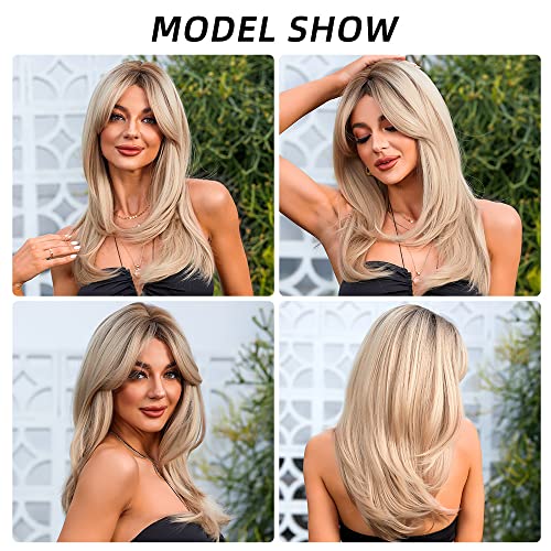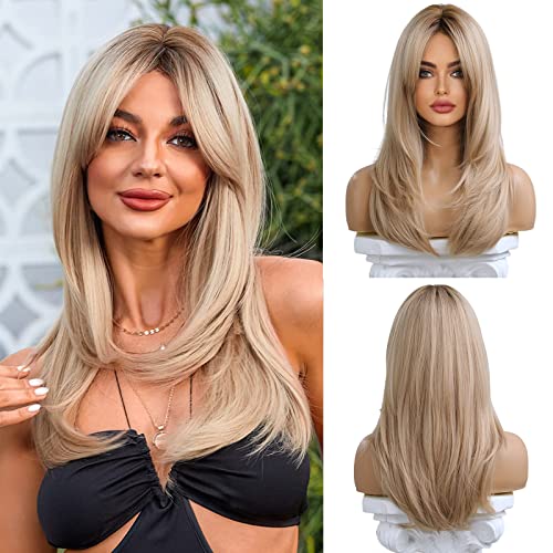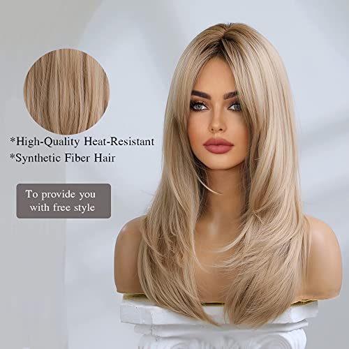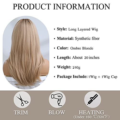 Esmee Sintetico Parrucca con Frangia Ombre Biondo Lungo Dritto Capelli Parrucca le Donne Resistente al Calore Fibra Cosplay Quotidiano Partito Parrucche 20 Pollic