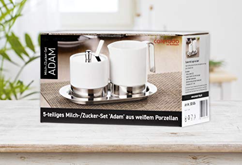 Esmeyer Adam - Set per Zucchero e Schiuma Latte da 5 Pezzi Adam, in Porcellana Bianca e Acciaio Inox, Set Composto da: Lattiera per Schiuma Latte 0,25 Litri,