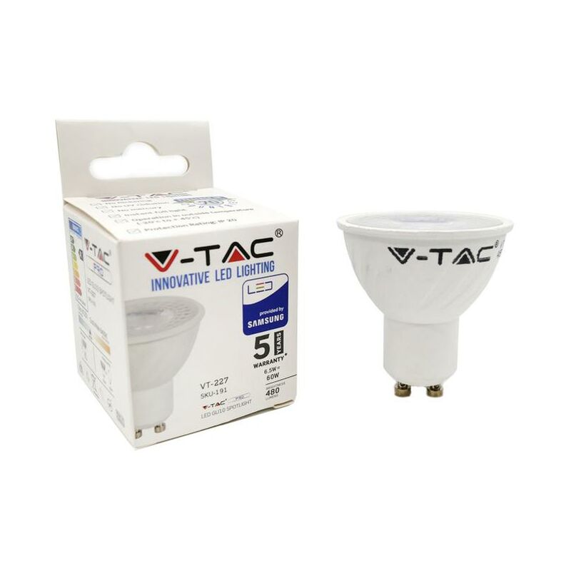 LED Lampadina SAMSUNG Chip GU10 6.5W Ripple Plastica 110'D 3000K SKU: 192: VT: VT-247 Caratteristiche del prodotto 80% di consumo energetico in meno rispetto alle lampadine standard Lunga durata Nessuna emissione di radiazioni UV e radiazioni non ionizzanti Accensione immediata, nessun tempo di riscaldamento Bassa potenza termica Direttamente sostituibile alle lampade ad incandescenza tradizionali Installazione Aree Commerciali e Residenziali Hotel, Bar Stand espositivi Lampadari Allaperto, esclusivamente allinterno di apparecchi idonei. Specifiche tecniche Informazione generale Attacco GU10 Tipo Lampadina PAR16 Tipo LED SAMSUNG Chip Vitamedia 30000 ore Dati elettrici Potenza 6.5W Potenza EQV. a incandescenza 60W Tensione AC: 220-240V Frequenza 50Hz Fattore di potenza 50Hz Dati tecnici luce Fascio Luminoso 110° Colore della luce Bianco caldo Temperatura di colore 3000K Flusso luminoso (lm) 480 lm Indice di resa cromatica Ra >80 Dettagli corpo Materiale Plastica Funzionalità IP