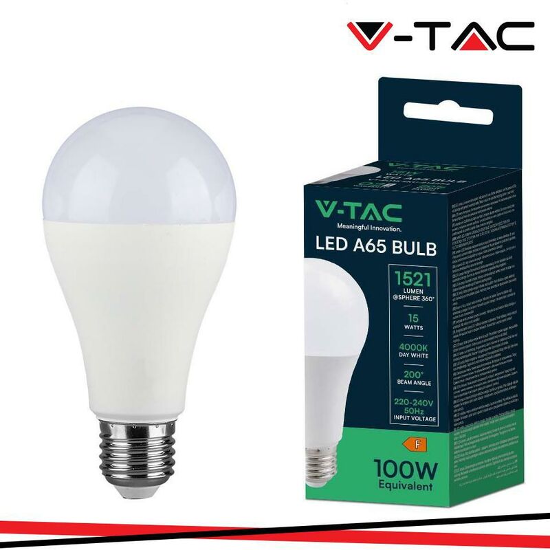 LED Lampadina 15W A65 Е27 Termoplastica 6500K SKU: 214455: VT: VT-2015 Caratteristiche del prodotto 80% di consumo energetico in meno rispetto alle lampadine standard Lunga durata Nessuna emissione di radiazioni UV e radiazioni non ionizzanti Accensione immediata, nessun tempo di riscaldamento Bassa potenza termica Direttamente sostituibile alle lampade ad incandescenza tradizionali Installazione Aree Commerciali e Residenziali Hotel, Bar Stand espositivi Lampadari Allaperto, esclusivamente allinterno di apparecchi idonei. Specifiche tecniche Informazione generale Attacco Е27 Tipo Lampadina A65 Tipo LED SMD Vitamedia 20,000 ore Dati elettrici Potenza 15W Potenza EQV. a incandescenza 100W Tensione AC:220-240V Frequenza 50Hz Dati tecnici luce Fascio Luminoso° 200° Colore della luce Bianco Temperatura di colore 6500K Flusso luminoso (lm) 1521 lm Indice di resa cromatica Ra >80 Dettagli corpo Materiale Termoplastica Funzionalità IP Protezione IP20 Tempo innesco 100% 0.001 secondo