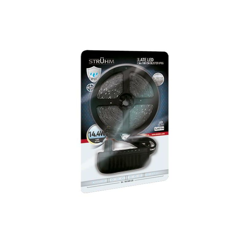 STRISCIA LED 3M 180 CW IP65 BLISTER .MATERIALE FR-4.COLORE BIANCA.PRODOTTO DECORATIVO.60 LED SMD PER 1 M.3 M PER ROTOLO x 0,8 cm larghezza.SOLO PER USO INTERNO.PUÒ ESSERE TAGLIATO OGNI 3 LED IN CORRISPONDENZA DEI SEGNI DI TAGLIOSPECIFICHE::Alimentazione elettrica=230V 50Hz:Energia=14,4 W:Fonte di luce=180 LED SMD 28x35, in set:Sorgente luminosa= non sostituibile:Non utilizzare=con dimmer:Flusso luminoso=1260 lm:Vita della sorgente luminosa=25000:Il grado di resistenza alla polvere e allumidità=IP65:Colore chiaro=bianco freddo 6500K:Angolo di distribuzione del flusso luminoso=140 °:Indice di resa cromatica Ra=> 80:Distanza minima da un oggetto illuminato=0,5 m:Protezione contro le scosse elettriche=Classe 2