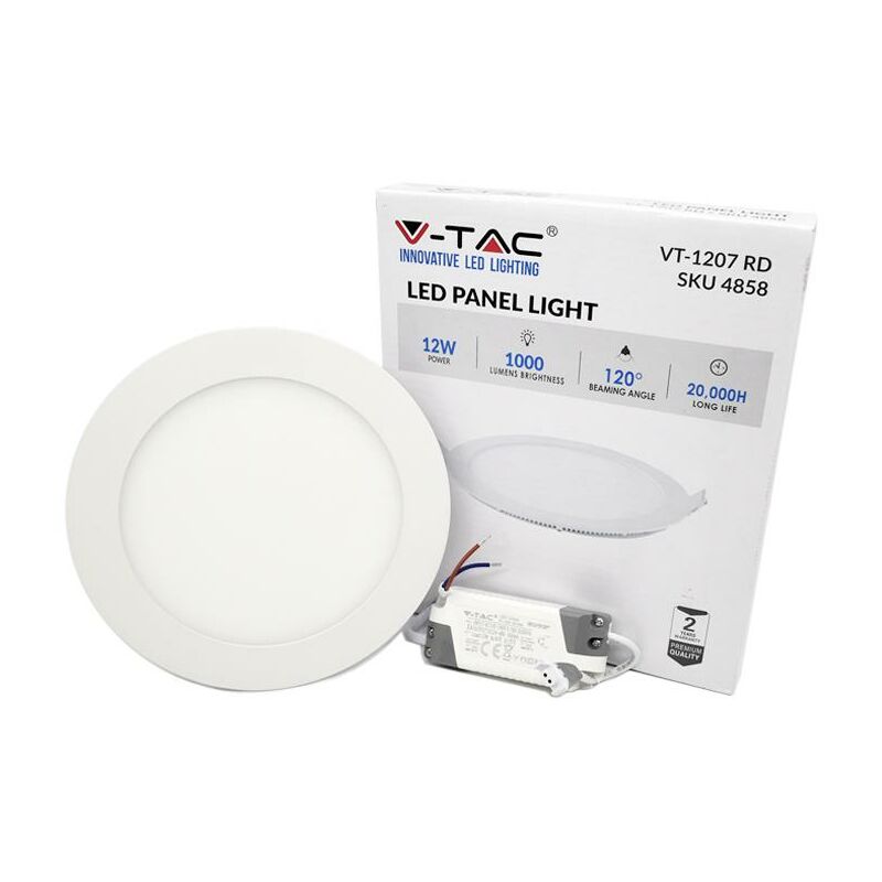 12W Pannello LED Premium Rotondo 3000K SKU: 4857: VT: VT-1207 Caratteristiche del prodotto Ultra sottile, moderna e dal Design elegante Maggiore velocità di trasmissione della luce Copertura esterna solida, difficilmente danneggiabile Senza infrarossi, non attira le mosche Facile da installare Priva di Piombo o mercurio Eco-compatibile Disponibili modelli dimmerabili Installazione Illuminazione dUfficio Sale per conferenze Ospedali Hotel Centri commerciali Showroom, Hall ecc. Cucine ed Illuminazione domestica Specifiche tecniche Informazione generale Tipo LED SMD Vita media >20 000h Dati elettrici Potenza 12W Potenza EQV. a incandescenza 48W Tensione AC: 200-240V Frequenza 50/60Hz Fattore di potenza >0.7 Dati tecnici Luce Colore della luce Bianco caldo Temperatura di colore 3000K Flusso luminoso 1000 lm Indice di resa cromatica Ra >80 Fascio Luminoso 120 ° Dettagli corpo Materiale Alluminio+PMMA+PS Forma Rotondo Colore Bianco Funzionalità Dimmerabile No IP Protezione IP20 Tempo